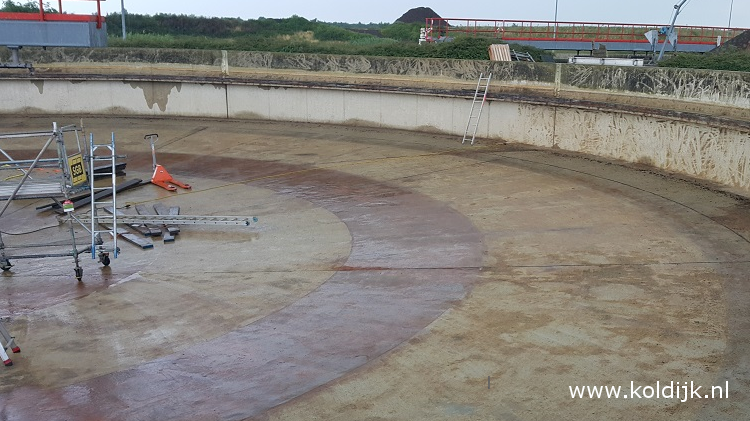 Onlangs heeft Koldijk Vloeren 2 grote bezinkbasins bij een fabriek in Oost Groningen voorzien van een nieuwe kunststofoverlaging, er waren 3 dagen beschikbaar voor de operatie en alles is netjes binnen de planning afgehandeld.
