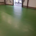 Bij een bedrijf in Farmsum wat chemicalien en vervuilde stoffen verwerkt is een Polyurethaan Cement gietvloer aangebracht in de huiskleur groen. De vloer is zwaar mechanish en chemisch belastbaar, stroef en toch goed te reinigen.